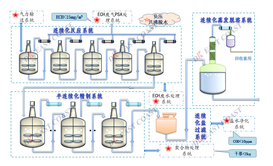 國(guó)際先進(jìn)環(huán)氧樹脂技術(shù):以樹脂反應(yīng)機(jī)理為起點(diǎn),理論結(jié)合實(shí)際,合理配置各生產(chǎn)工序,優(yōu)化關(guān)鍵參數(shù)及操作步驟;擁有ECH廢氣處理和高鹽廢水凈化處理等多項(xiàng)國(guó)內(nèi)外專利和自有技術(shù),實(shí)現(xiàn)了ECH廢氣高效回收利用和高鹽廢水零排放,徹底解決行業(yè)內(nèi)環(huán)保瓶頸問題,填補(bǔ)國(guó)內(nèi)外空白。